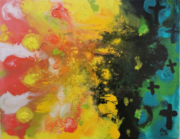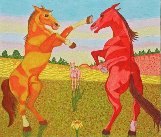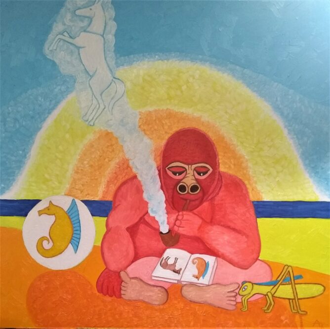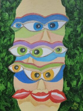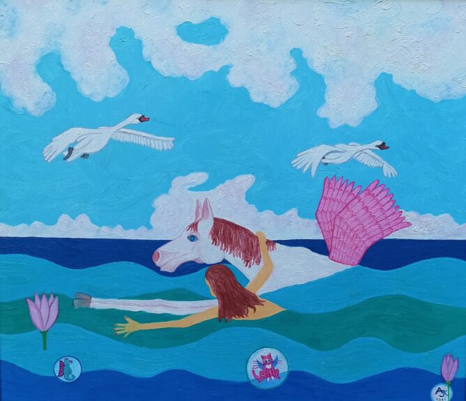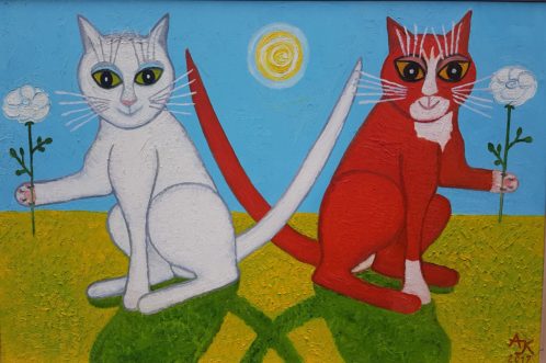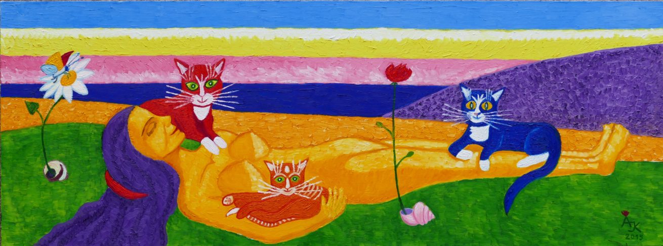 Obrazy olejne Medytacja (150 x 110, 2025 r.)Splątane myśli nad ranem (150 x 80, 2024 r.)Pasja (150 x 80, 2025 r.)Podeptane marzenia (110 x 100, 2025 r.)Depresja (150 x 200, 2025 r.)Spirala cierpienia (100 x 80, 2024 r.)Dotknięcie czerni (80 x 220, 2025 r.)Kici-kici (140 x 100, 2024 r.)Jasność pełna kolorów (130 x 150, 2025 r.)Spotkanie ze śmiercią (110 x 110, 2024 r.)Słoneczne pastwisko (110 x 120, 2024 r.)Zakochany ogier (110 x 160, 2024 r.)Czarna łapa (150 x 120, 2024 r.)Nieoczywiste ślady na błękicie (110 x 150, 2024 r.)Zagubiona rozgwiazda (130 x 110, 2024 r.)Biała szczelina (110 x 150, 2024 r.)Czerwony koń (110 x 110, 2024 r.)Autoportret w fazie twórczej (110 x 110, 2024 r.)Tajemnice morskiej fali (140 x 100, 2024 r.)Tajemnice zachodniego wiatru (80 x 150, 2024 r.)Tajemnice płomieni (110 x 140, 2024 r.)Zakochana Alga (80 x 150, 2024 r.)Miłość i żądza (110 x 140, 2023 r.)Zielonooka (100 x 150, 2023 r.)Święta Rodzina (130 x 150, 2023 r.)Kocham morze (100 x 150, 2023 r.)Współ – czucie (130 x 150, 2023 r.)Biała kula (140 x 100, 2023 r.)Kwitnąca żyrafa nocą (110 x 160, 2023 r.)Mona Lisa z cieżarną kotką (80 x 150, 2023 r.)Głebia kociej kobiecości II (120 x 140, 2023 r.)Przecięcie Węzła Gordyjskiego (130 x 100, 2023 r.)Pimpinella (90 x 110, 2023 r.)Krwawy Atak (110 x 110, 2023 r.)Zawirowanie (110 x 110, 2022 r.)Pierwsza miłość (100 x 120, 2023 r.)Czarny motyl (120 x 80, 2023 r.)Rozpacz (70 x 130, 2023 r.)Pocałunki i głaski (80 x 120, 2022 r.)Zatrzymać marzenia (150 x 100, 2022 r.)Spotkanie nad morzem (150 x 100, 2022 r.)Spotkanie w górach (110 x 110, 2022 r.)Spotkanie na łące (110 x 110, 2022 r.)Spotkanie przy ognisku (120 x 120, 1994 r.)Wschodnia granica (70 x 90, 2022 r. )Lody Waniliowe na czerwonej kanapie (120 x 120, 2022 r.)Boze Narodzenie II (120 x 120, 2022 r. )Szczelina wolności II (130 x 80, 2022 r.)Chmurne marzenia (130 x 80, 2022 r.)Pocałunki (80 x 60, 2021 r.)Pulsująca Tęsknota (150 x 100, 2021 r.)Łabędzi śpiew (142 x 120, 2021 r.)Jądro prawdy (120 x 120, 2021 r.)Szczelina wolności (140 x1 20, 2021 r.)Samotność i nadzieja (150 x 150, 2021 r.)Gra w zielone (120 x 120, 2021 r.)Wyzwolenie (150 x 100, 2021 r.)Czarna Dziura – droga wyjścia (120 x 120, 2021 r.)Wielka Biel – drogi dojścia (150 x 100, 2021 r.)W błękitnej transcendencji (140 x 120, 2021 r.)Bezsenna twórczość (150 x 100, 2021 r.)Ból istnienia (130 x 80, 2021 r.)Wirujące kolory (150 x 150, 2020 r.)Skąd przyszliśmy, kim jestesmy, dokąd idziemy II (160 x 120, 2020 r.)XV stacja Drogi Krzyżowej – wypędzenie (140 x 120, 2020 r.)Skąd przyszliśmy, kim jesteśmy, dokąd idziemy I (tryptyk, 90 x 50, 120 x 90, 90 x 50, 2020 r.)Kolory Życia (270 x 60, 2020 r.)Czarne chmury nad nami (150 x 150 2020 r.)Przemijanie – wczoraj (110 x 110, 2020 r.)Przemijanie – dziś (110 x 110, 2020 r.)Przemijanie – jutro (110 x 110, 2020 r.)Pandemia (120 x 120 2020 r.)Polska A.D. 2020 (160 x 130, 2020 r.) Cierpienie i śmierć ostatniej białej żyrafy (110 x 150, 2020 r.)Mściciel unicestwionych gatunków (150 x 150, 2020 r.)Pożegnanie Dzięcieliny i Basałyka (140 x 120, 2020 r.)Afrodyta i morskie ptaki (160 x 100, 2020 r.)Bujane w obłokach (150 x 150, 2020 r.)Pewnego razu w Białym Borze (160 x 150, 2020 r.)Kąpiel z Pegazem (140 x 120, 2019 r.)Simia sapiens, 150 x 150, 2019Męczeństwo dzików, 150 x 100, 2019 r.Polska na pół podzielona, 120 x 90, 2019 r.Walka o sprawiedliwość, 180 x 80, 2018Qvo vadis ecclesiae, 150 x 120, 2019 r.Uskrzydlone marzenia – wspomnienia II, 150 x 150, 2018 r.Żyrafa u wodopoju II ,140 x 120, 2008Piękna Pani i jej konie, 120 x 90, 2018 r.Upadek z wysokiego konia, 130 x 80, 2018 r.Zwycięstwo, 120 x 120, 2018 r.Wolność słowa, 170 x 70, 2017 r.Koty patryioty, 120 x 80, 2017r.Płomień Nadziei, 100 x 150, 2017 r.Atak na Białe Róże, 170 x 75, 2017 r.Wszystkie moje zwierzęta, 120 x 120, 2017 r.Malarstwo niebieskie, 150 x 100, 2017 r.Świat pod skrzydłami zielonej sowy, 80 x 130, 2016 r.Głębia kociej kobiecości, 120 x 80, 2016 r.Tajemniczy lot jednorożca, 140 x 110, 2016 r.Uskrzydlone marzenia – wspomnienia, 150 x 150, 2015 r.Skok ponad czasem, 180 x 130, 2015 r.Łzy pasiastego słonia, 130 x 150,Święty Franciszek, 140 x 12,0Cwał do zwycięstwa, 150 x 130, 2013Hippogyna – zakochanie, 120 x 92, 2012Autoportret wewnętrzny – walka centaury z pegazem, 150 x 100, 2010 r.Hippogyna – okocenie, 120 x 92, 2011Ostatnia wieczerza fragment, 225 x 125Ostatnia wieczerza fragment, 60 x 125 Ostatnia wieczerza fragment, 225 x 125 Sen z kotami, (162 x 60) kopia skradzionejMatka Boska Ornakowska tryptyk 115 x 75 + 2 x (40 x 75), 2010 r.Portret małżeński, 120 x 70, 2009 r.Klepsydra, 145 x 100, 2008 r.Doznanie piękna, 2007 r. 002Arcykłamca (100×80,) 2007Autoportret z koniem i ptaszkiem.2006Kłamca (podobieństwa osób i zdarzeń rzeczywistych do przedstawionych są przypadkowe) (60×80, 2006 r.)Próba ugaszenia wewnętrznego ognia (140×120, 2006 r.)Afrodyta wychodzi z morza (150×100, 2006 r.)Wielkanoc – noc (100×100, 2005 r.)Wielkanoc – dzień (100×100, 2005 r.)Kwitnąca żyrafa. 150×100, 2006 rHippogyna – Zwycięstwo nad szarą codziennością (140×120, 2006) 1Skomlikowane wnętrze nawiedzonej sowy, 140 x 120, 2006 r.Pieśń nad pieśniami (140×120, 2005 r.)Dwa ogiery i blondynka (140×120 2005 r)Boże Narodzenie (145×116, 2004 r.) Alga samotrzecia (145×115 – 2004 r) 2Kobieta – Kot (142×105, 1990 r.) Wariatka (135×97, 1990 r.) Adam i Ewa, czyli narodziny Wenus (135×97, 1990) Czy to pies, czy to bies (100×81, 1989 r.)