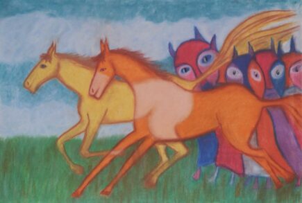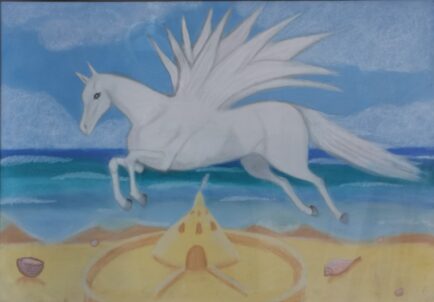 Pastele Rozanielony koń, 48×62Diabelski koń, 48×62Macierzyństwo Algi, 41cm x 65 cm, 2002 r.Wygnanie z raju, dyptyk, 2 x 70 cm x 100 cm, 2002 r.Gonią nas diabły, 70 cm x 50 cm, 2002 r.Koń tęskniący za morzem, 69 cm x 48 cm, 2002 r.Drzewo wiadomości dobrego i złego, 100 cm x 70 cm, 2002 r.Miłość rozkwita na plaży, 100 cm x 70 cm, 2002 r.Śmierć konia, 100 cm x 70 cm, 2001 r.Przejście przez Morze Czerwone, 100 cm x 70 cm, 2001 r.Cudowna plaża, 100 cm x 70 cm, 2001 r.Kobieta koń, 42 cm x 42 cm, 2001 r.Koński raj, 42 cm x 30 cm, 2001 r.W głowie masz tylko konie, 100 cm x 70 cm, 2001 r.14.4. Między niebem a piekłem, 52 cm x 70 cm, 2001 r.Portret mamy II, 64 cm x 51 cm, 1968 r.Portret mamy I, 70 cm x 50 cm, 1968 r.