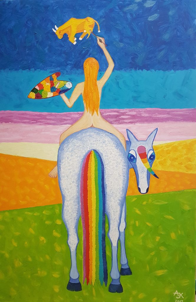 Staram się, by moje obrazy były zapisem świata, w którym istnieją Dobro i Zło, świata, w którym urodził się i zmartwychwstał Bóg, ale istnieje też Diabeł. W tym to świecie możliwy jest każdy cud. Wzajemne relacje między ludźmi i zwierzętami mogą rodzić miłość, szczęście, harmonię i spełnienie. Kiedy jednak słuchamy podszeptów Złego, możemy przeżyć bolesne rozstanie, choroby duszy, opętanie, a nawet ból i rozpacz wiecznego potępienia. Podlegamy temu wszyscy: ludzie i zwierzęta – Każdy na własną miarę.